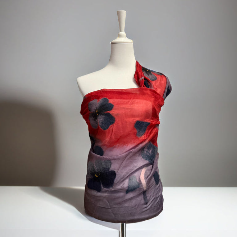 Un sueño de patrones florales elaborados a partir de lana merino, fusionada con seda brillante y fina como una gasa.