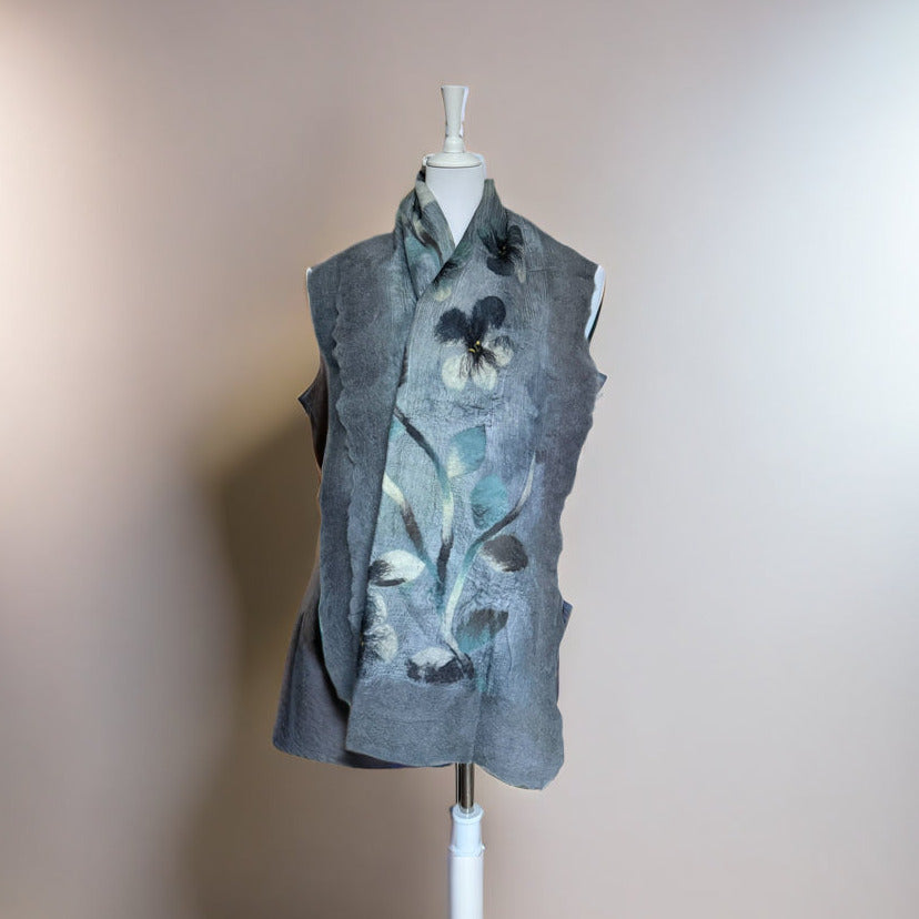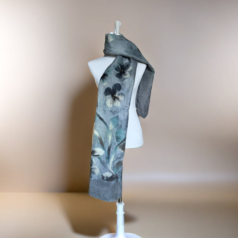 Una pieza verdaderamente única: la seda brillante y detallada se fusiona con la suave lana merino para crear un elemento inconfundible que atrae todas las miradas.