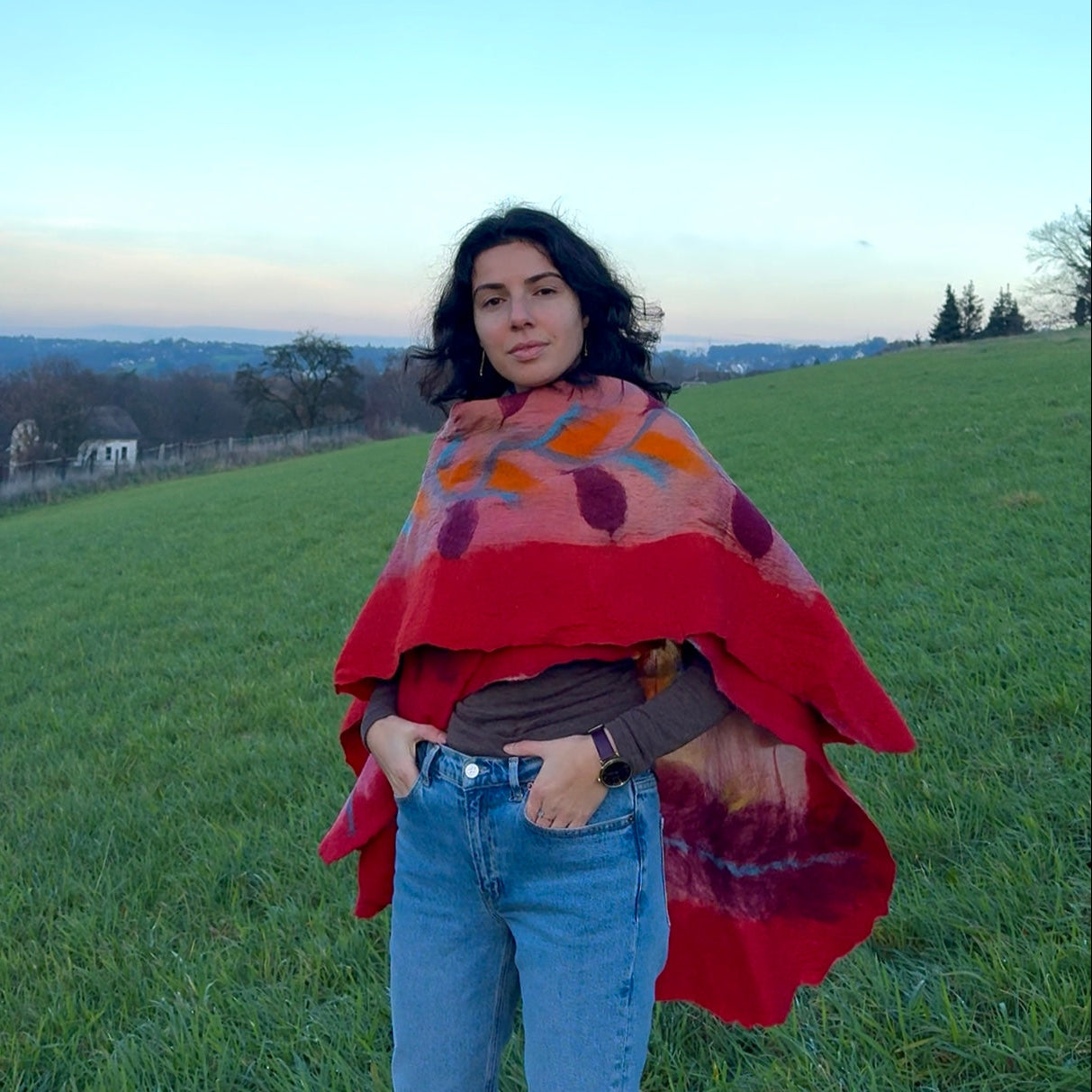 Poncho aus Merinowolle und Seide - 2 in 1