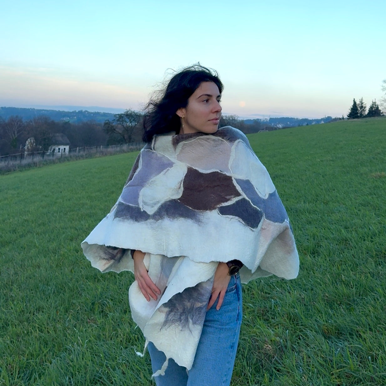 Durch die Vorder- und Rückseite ergeben sich zwei verschiedene Muster, vereint in einem Poncho.