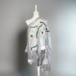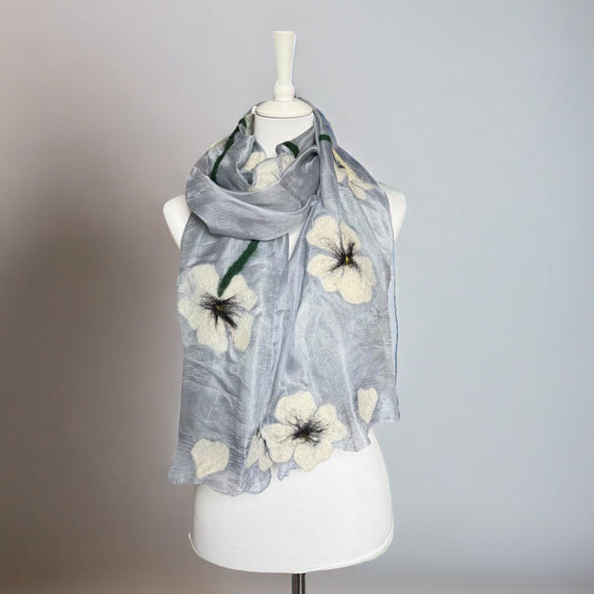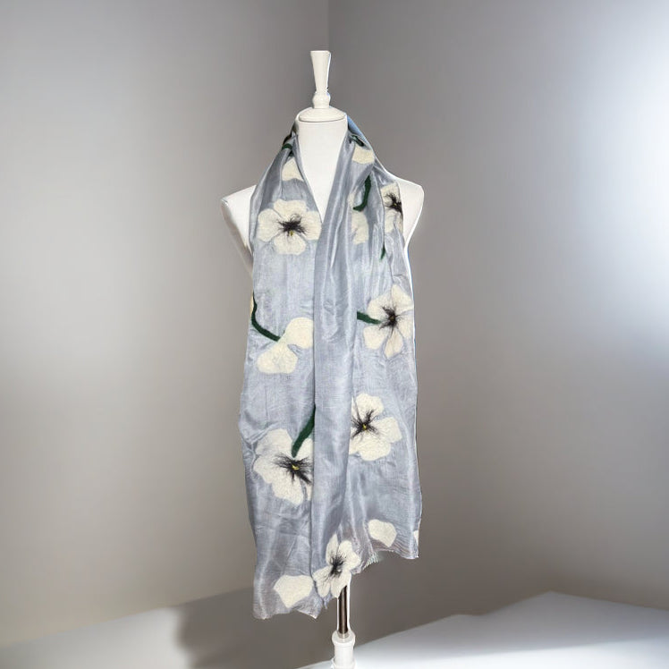 Ein Traum von Blumenmustern aus Merinowolle, verschmolzen mit hauchdünner, glänzender Seide.